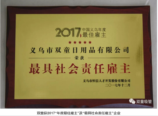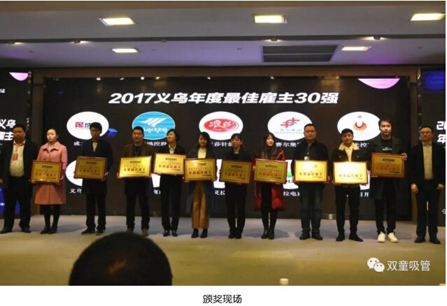 118日,2017義烏年度最佳雇主頒獎盛典暨人力資源高峰論壇驚喜舉辦!近百位企業(yè)負(fù)責(zé)人共同見證了義烏新一屆最佳雇主的誕生,雙童也名列其中,被評為2017中國義烏年度最佳雇主最具社會責(zé)任雇主企業(yè)!