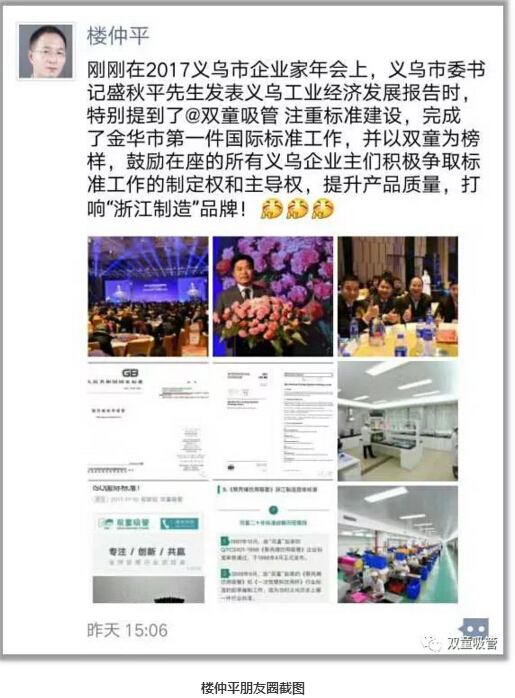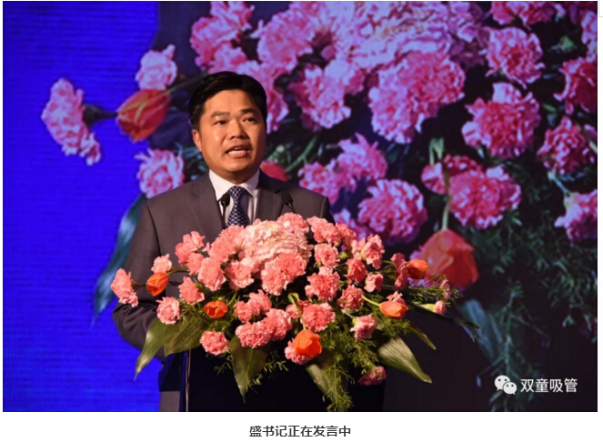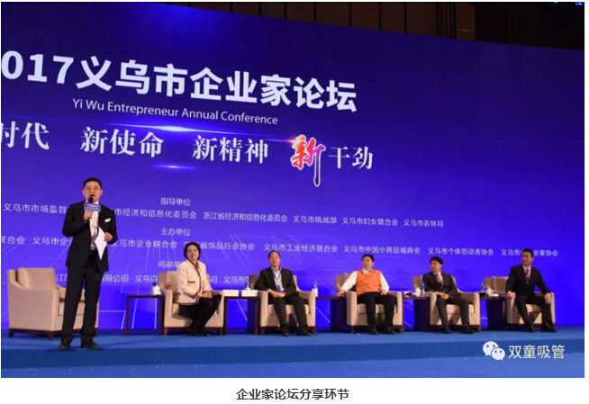 首先,義烏市委書記盛秋平先生發(fā)表了義烏工業(yè)經(jīng)濟(jì)發(fā)展報(bào)告,寄語義烏企業(yè)家,要把握機(jī)遇、奮發(fā)勇為,弘揚(yáng)雞毛換糖精神,開創(chuàng)新時(shí)代新征程,在發(fā)言中還著重點(diǎn)贊了雙童的標(biāo)準(zhǔn)創(chuàng)新工作!