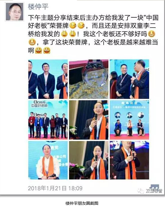 “雙童李二橋分享道:在高速變化的時(shí)代之下,不同背景和年齡段的員工對(duì)心目中的好公司是有不同訴求的。新一代員工除了關(guān)注薪資之外,更多追求晉升通道,追求個(gè)性和快樂(lè)。除此之外,更多的員工衡量公司好壞的標(biāo)準(zhǔn)是公司能否提供實(shí)現(xiàn)自己能力的平臺(tái)。因此,雙童也一直在致力于打造平臺(tái),實(shí)施增量激勵(lì),幫助員工成長(zhǎng),在共同追求中形成一致的價(jià)值和理念認(rèn)同。分享結(jié)束后,雙童李二橋給樓總頒發(fā)了中國(guó)好老板榮譽(yù)牌,樓總也打趣道這個(gè)老板是越來(lái)越難當(dāng)啦!