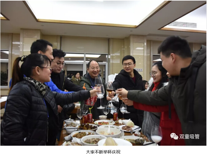 終于,樓大廚也圓滿(mǎn)完成了自己的廚師任務(wù),來(lái)到席間與大家一同享用美味。瞧,大家拿著酒杯不斷敬酒,感謝同事們一年下來(lái)的配合幫助。一輩子不喝酒的樓總也用一碗湯與大家干杯,現(xiàn)場(chǎng)熱鬧極了!大家吃飽喝足,明年有勁,擼起袖子加油干吧!