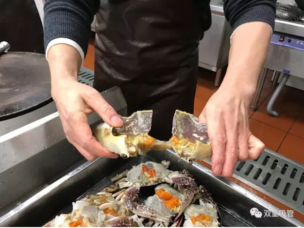 九、掰開(kāi)后的螃蟹千萬(wàn)不要再清洗了,包括黑乎乎的膏體千萬(wàn)不要洗清哦!