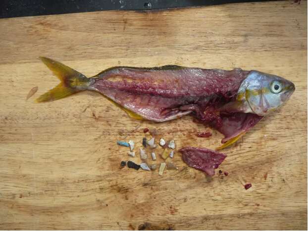 塑料微粒被魚類吞食后,人吃魚,塑料微粒就會(huì)留在人體。
