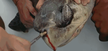 這個(gè)過程海龜痛苦萬分,鼻孔鮮血直流。