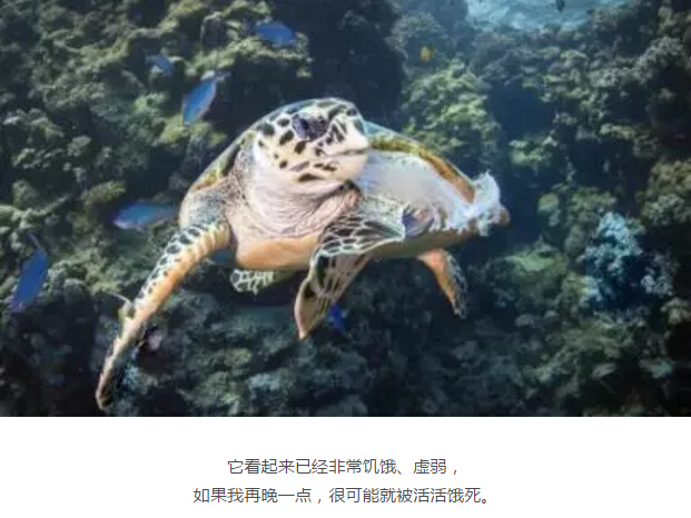 還有一位潛水大叔在海底發(fā)現(xiàn)被塑料卡住喉嚨的海龜。