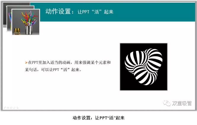 制作PPT除了以上的技巧外,PPT內(nèi)容關(guān)鍵詞句的提煉、配圖素材的選擇和準(zhǔn)備、照片的處理、動畫的設(shè)置、視頻鏈接的添加也是讓PPT更加美觀的因素!