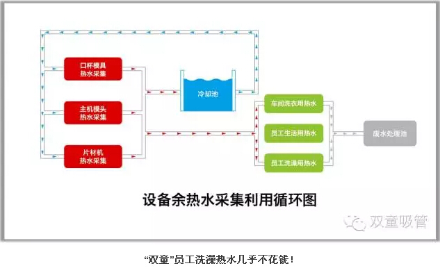 “雙童”很摳,摳在連“余熱能源”都要采集!我們?cè)诮◤S之初,通過(guò)對(duì)車間模具冷卻用水的收集,把熱水供應(yīng)到寢室樓給員工洗澡洗衣生活之用。同時(shí)我們也把生產(chǎn)設(shè)備的余熱和廢氣進(jìn)行采集并回收,經(jīng)過(guò)凈化處理后再供應(yīng)給車間進(jìn)行供熱,從而高效利用了余熱能源。