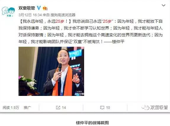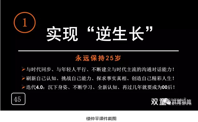 追隨者:我們所遇見(jiàn)的這個(gè)時(shí)代面臨著破局、顛覆、巨變、迭代…… 老一代管理者本質(zhì)上與90后員工存在著一條巨大的鴻溝,這條鴻溝就是對(duì)現(xiàn)代知識(shí)的認(rèn)知。年輕人學(xué)習(xí)知識(shí)有先天的優(yōu)勢(shì),所以,當(dāng)家人樓仲平一直堅(jiān)持向年輕人學(xué)習(xí),創(chuàng)建與年輕人對(duì)話和溝通的能力,永遠(yuǎn)將自己定位在25歲,緊追時(shí)代步伐,不讓自己成為時(shí)代的棄兒!