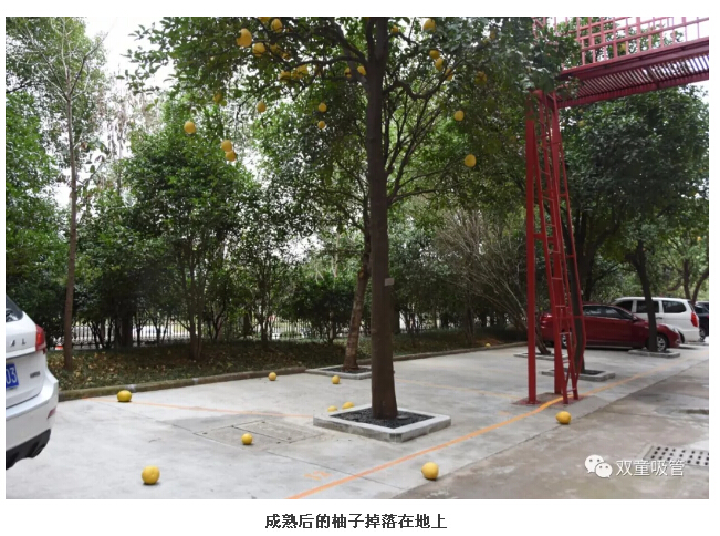 原來,為了“雙童”的生態(tài)和美觀,公司明確柚子是觀賞性水果,每棵柚子樹上都有“觀賞水果,請勿摘食”的字樣,提醒和引導(dǎo)員工不要摘食觀賞水果。