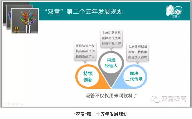 通過歷次變革與創(chuàng)新,“雙童”成功擺脫了薄利多銷的粗放經(jīng)營,轉(zhuǎn)型成為一家互聯(lián)網(wǎng)創(chuàng)新企業(yè),改變了大家對吸管行業(yè) “低、小、散、弱”的傳統(tǒng)認知,改變了吸管行業(yè)的傳統(tǒng)發(fā)展方式,促進了整個吸管行業(yè)的產(chǎn)業(yè)鏈升級!