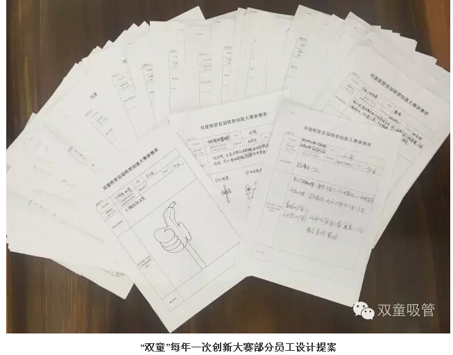 除此之外,“雙童”動員內(nèi)部全體員工進行思維創(chuàng)新,在公司舉行吸管創(chuàng)新大賽,收集到了不少優(yōu)秀的創(chuàng)新提案。另一方面,“雙童”也陸續(xù)與浙江師范大學、北京服裝大學、中國塑料工業(yè)研究所等機構建立長期合作,從而逐漸形成了規(guī)范的研發(fā)性低成本創(chuàng)新之路!