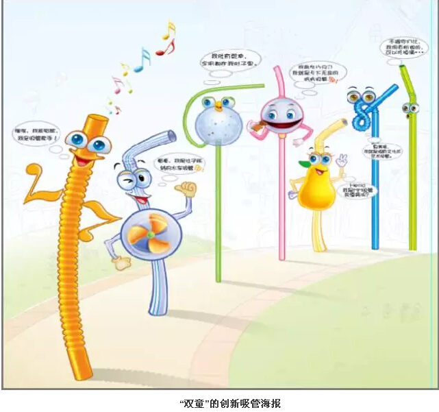 2006年,雙童開發(fā)的藝術(shù)吸管,原先是手工操作,雙童通過四年的努力研發(fā)機器設(shè)備,并開發(fā)出了全自動生產(chǎn)流水線,在20095月實現(xiàn)量產(chǎn),投入生產(chǎn)。截止到目前,雙童的藝術(shù)吸管占有了國內(nèi)市場的半邊江山,實現(xiàn)了雙童1/4的產(chǎn)值。除此之外,雙童還研發(fā)了愛心吸管、眼鏡吸管等創(chuàng)新吸管,在市場上引發(fā)了極大的關(guān)注,塑造了品類多樣、敢于創(chuàng)新的企業(yè)品牌。至此,吸管不僅僅用來喝飲料了!