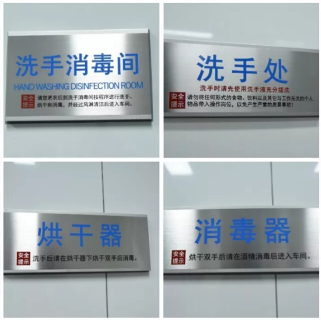 除此之外,功能區(qū)內(nèi)還配置了高端的烘干器、消毒器、感應(yīng)水龍頭以及酒精消毒器等硬件,并配置了許多精心定制的標(biāo)示牌,提示著員工規(guī)范使用!這樣的配備也為員工的衛(wèi)生要求做了硬件的保障,確保員工工作環(huán)境的極致衛(wèi)生!
