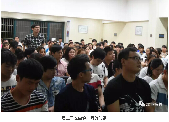 在經(jīng)過一番詳細(xì)的講解和培訓(xùn)后,毛講師還出了好幾個小考題,想要考一考我們的員工們。這當(dāng)然難不倒我們的員工啦,看,一個個胸有成竹地站起來響亮回答,真是棒棒的!