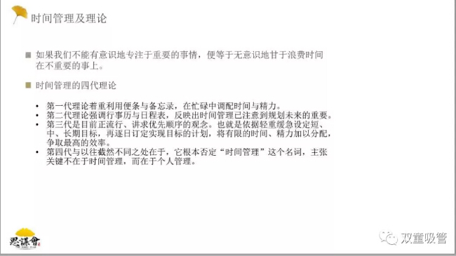 接下來(lái),趙宜萱博士也和同學(xué)們分享了自我管理的心得:自我管理的原則是要事第一,將耗費(fèi)時(shí)間的事務(wù)依據(jù)急迫性與重要性分為四類(lèi):緊急重要、緊急不重要、不緊急重要、不緊急不重要,側(cè)重于重要的事情,合理規(guī)劃自己的時(shí)間!