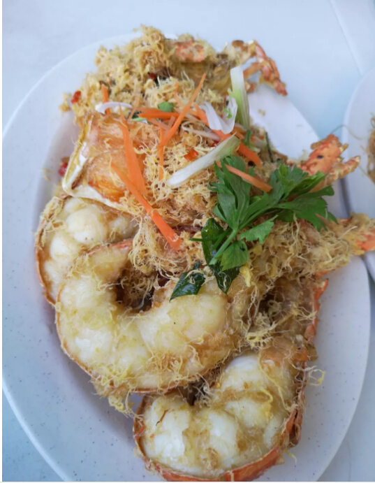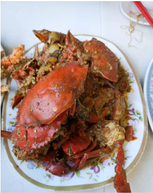 從軍艦島回到鎮(zhèn)上,我們就回民宿抓緊時間洗漱,去街上買了大龍蝦、皮皮蝦、海蟹,拿到也是很有名的天旺海鮮樓加工制作。買海鮮的過程參照昨天提到的,七八位賣海鮮的當(dāng)?shù)厝四弥鞣N各樣的海鮮圍著我們,簡直是來不及應(yīng)對。再加上要趕飛機(jī),所以我們的海鮮餐沒有狠砍價,最后我們的海鮮大餐創(chuàng)了我們在馬來的最奢侈一餐——561元馬幣,相當(dāng)于4個人吃了900塊錢人民幣,心疼荷包三秒鐘。不過,天旺加工的味道也很棒了,我們四個人吃不完,還打包回亞庇了呢。