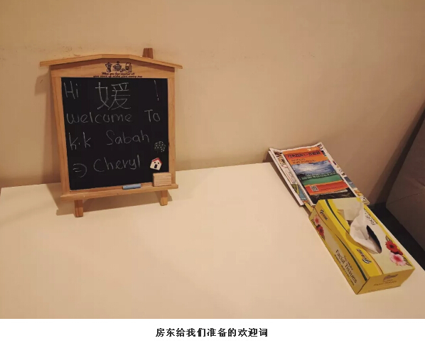 搭乘晚上的飛機(jī)回到亞庇,我們提前一天在愛彼迎上訂好了套房。下面必須安利一波我們在亞庇住的套房!這個Lazy.Elephant套房,它位于哥打京那巴魯市,是中央商務(wù)區(qū)天空套房。它不僅有兩扇大大落地窗可以觀賞城市景觀和絕美日落,還能共享sky hotel的INFINITY游泳池,健身房和天空休息室!有這樣的套房,可以提供六人居住,一晚只要500左右人民幣,太適合家庭或者組團(tuán)居住了!房東Chery人超好,因為我們到亞庇已經(jīng)十一點(diǎn)多了,她怕我們找不到地方,把每一個需要拐彎和注意的地方都用照片拍下來標(biāo)注好箭頭,提醒我們應(yīng)該怎么走。到達(dá)房間后,能夠看到她在客廳小黑板上寫了歡迎詞,貼心的寫了姐姐的中文字“媛”,讓人一進(jìn)門就感覺特別溫暖。