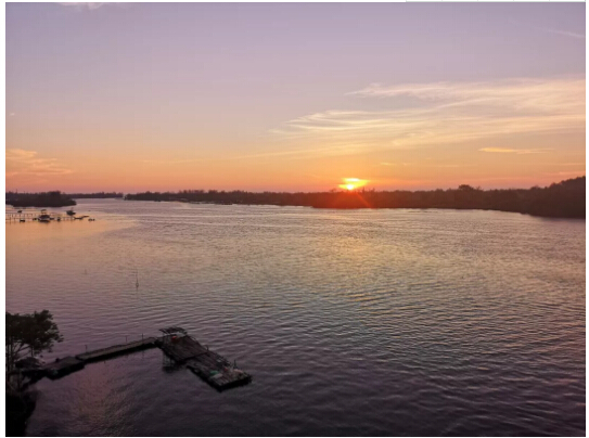 一路上繞來繞去,到達(dá)以后卻愣是沒找到入口,后面找到隔壁一家釣魚場的工作人員一問,才知道原來龍尾灣是早上開船過去,下午就坐船回來了,我們那個時間去,連工作人員都已經(jīng)下班回家了。好吧,那我們就往回趕,希望能在太陽下山之前找到一個沙灘再看一次落日。最后,沙灘沒找到,我們干脆停在了一座大橋邊上,在大橋上看完了我們在沙巴亞庇的最后一個落日。雖然不像沙灘邊那么絕美壯觀,卻也是別有一番滋味。
