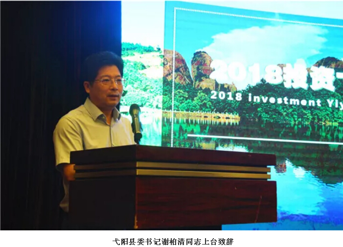 活動開場后,弋陽縣委書記謝柏清同志上臺致辭,并介紹了弋陽縣的基本情況,宣傳和推介了弋陽縣主導(dǎo)產(chǎn)業(yè)的投資發(fā)展具體情況。他由衷希望能夠促進(jìn)各類要素和創(chuàng)新資源向弋陽集聚,并誠摯邀請各位嘉賓到弋陽走一走、看一看,領(lǐng)略青山綠水的魅力,尋找投資合作的機(jī)遇、開拓互利共贏的領(lǐng)域。