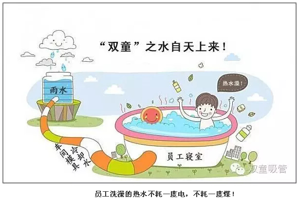 通過“雨水收集系統(tǒng)”,“雙童”每年可收集到5至6萬噸雨水;通過“廢水處理收集循環(huán)系統(tǒng)”,企業(yè)每年可節(jié)省水費支出40余萬元;通過“設備余熱水采集利用循環(huán)系統(tǒng)”,可以實現(xiàn)員工洗澡的熱水不耗一度電、不燒一斤煤,全部使用雨水在設備上形成的余熱水。