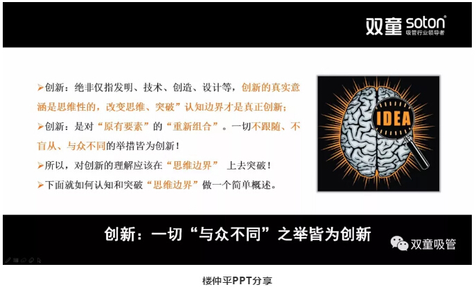 在分享過程中,樓仲平提到生意難做是因?yàn)?/span>“思維固定”。身處高速變化的時(shí)代,如何突破思維遮蔽,將自身思維邊界打開,成為創(chuàng)業(yè)者們必須面對(duì)的問題!接下來,吸管妞就結(jié)合視頻和大家重點(diǎn)分享課程第三章《生意難做是因?yàn)椤八季S固定”了》!