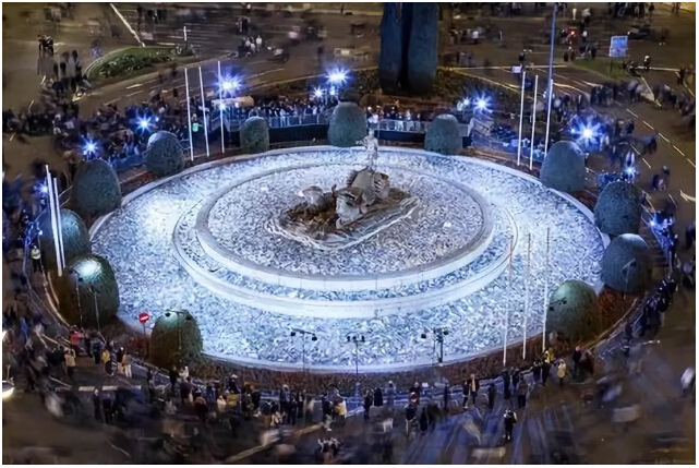 塑料瓶塞住了Cibeles噴泉,