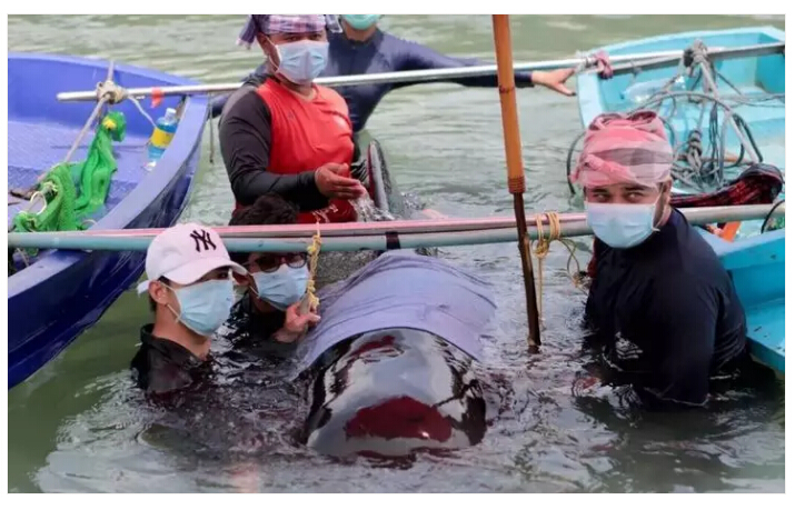 這只小領(lǐng)航鯨艱難吐出5個(gè)塑料袋,