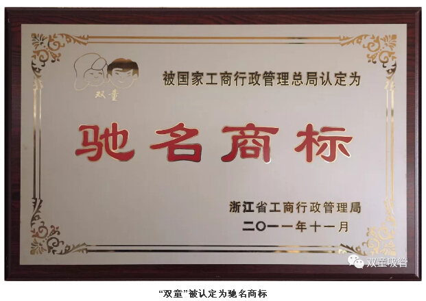 于是,樓仲平就拿著這個圖案去找義烏工商局咨詢,義烏工商局的科長直接了當(dāng)?shù)馗嬖V他,這一定是已經(jīng)注冊過的商標了!但樓仲平并不死心,花了三百塊錢查詢費要求科長在電腦上查一下,經(jīng)過查證之后發(fā)現(xiàn)這個商標還真沒有人注冊??崎L通知樓仲平:“你要注冊的話帶齊相關(guān)證件,自己過來注冊”。于是,樓仲平立馬帶著相關(guān)證件,用了2000元搶占先機,把這個圖案注冊為商標。在確定商標名稱時,根據(jù)圖案上兩個兒童的標志,樓仲平夫婦將“雙童”確定為商標的名字,兩個兒童一男一女,比較容易記憶。