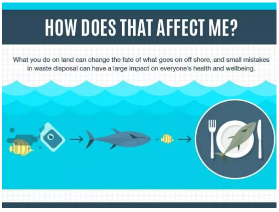 據(jù)調(diào)查,海鮮、牛肉、海鹽、自來水等都有被塑料污染的情況。 無法被分解的塑料進入海洋生物體內(nèi),沉積到血液、脂肪、肌肉里,最后又被人類吃下了肚。