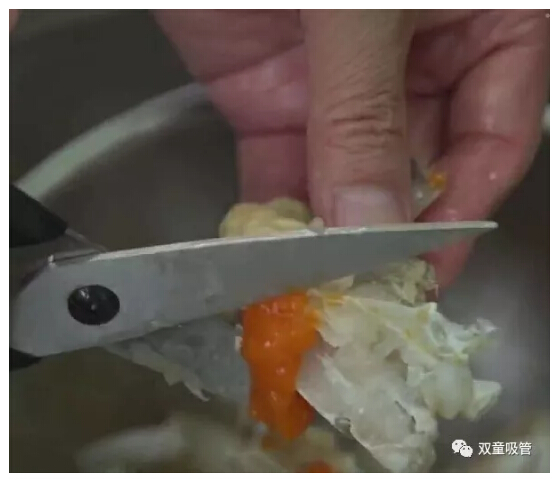 先用剪刀將梭子蟹剪成塊,