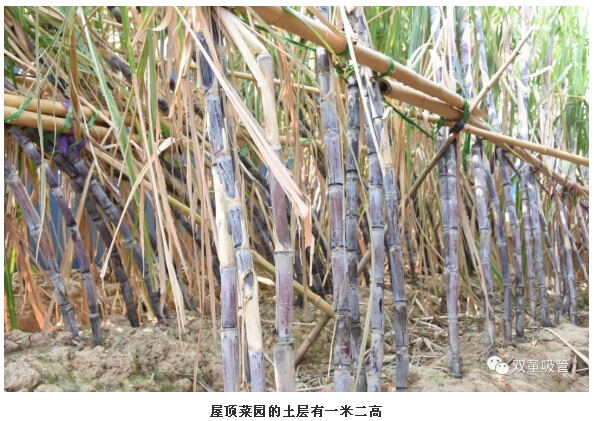 很多人會奇怪,為何空中還能種甘蔗呢?其實,我們屋頂菜園有一米二高的土層,別說甘蔗,石榴樹枇杷樹也照樣種呢!