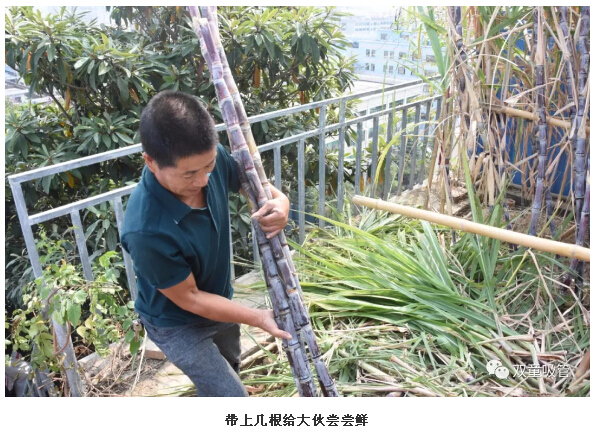 這不,“雙童”屋頂菜園里的甘蔗也迎來了豐收季,一排排粗壯的甘蔗,紫色的枝干和清悠悠的葉子整齊劃一的在風(fēng)中搖擺,誘人極了!
