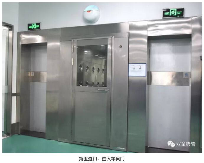 5.員工們風(fēng)淋后經(jīng)過第五道車間入口門,進(jìn)入車間進(jìn)行生產(chǎn)工作。