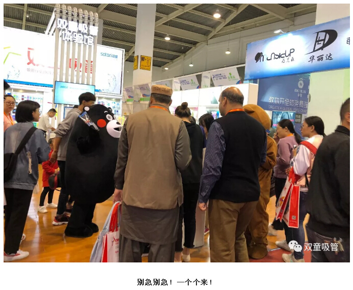 在網(wǎng)紅熊帶領下,“掃一掃送創(chuàng)新吸管”的活動讓來往的客商們“欲罷不能”,現(xiàn)場十分火爆哦!別急別急!一個個來,妞可是準備了很多呢!