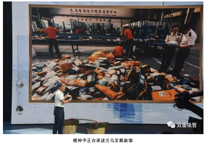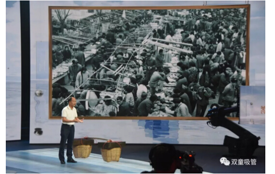 在節(jié)目現(xiàn)場,“雙童”樓仲平也帶來了許多精彩的照片。其中,開場照片便是義烏這座城市的對比照片。通過挑貨郎與義烏小商品城開展全球電商的照片對比,樓仲平講述了義烏如何從貧瘠落后的小縣城發(fā)展為全球最大的小商品集散中心的故事……