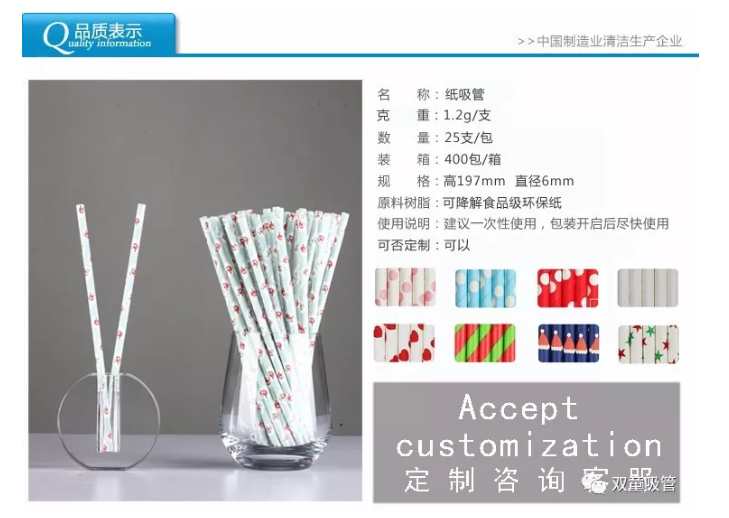 相對于塑料吸管,紙質(zhì)吸管以食品接觸類原紙為主要材料,并能用大豆基油墨印刷各類花色,在顏色鮮艷飽滿的同時,確保安全無毒無異味,在回收廢棄后三到四個月內(nèi)可完全降解,符合歐美國家對食品安全包裝的衛(wèi)生要求,可用于生日派對、餐飲連鎖、家庭消費(fèi)、兒童DIY用具等各類場所!