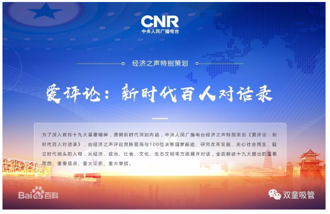 近日,中央人民廣播電臺(tái)經(jīng)濟(jì)之聲播出《愛(ài)評(píng)論:新時(shí)代百人對(duì)話(huà)錄》改革開(kāi)放四十周年特輯。其中,也播出了經(jīng)濟(jì)之聲首席評(píng)論員陳愛(ài)海對(duì)話(huà)“雙童”樓仲平的專(zhuān)訪(fǎng)節(jié)目!