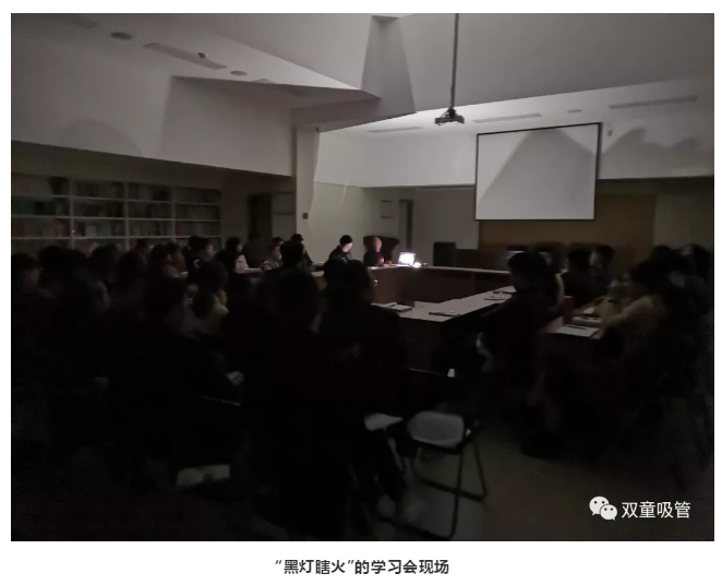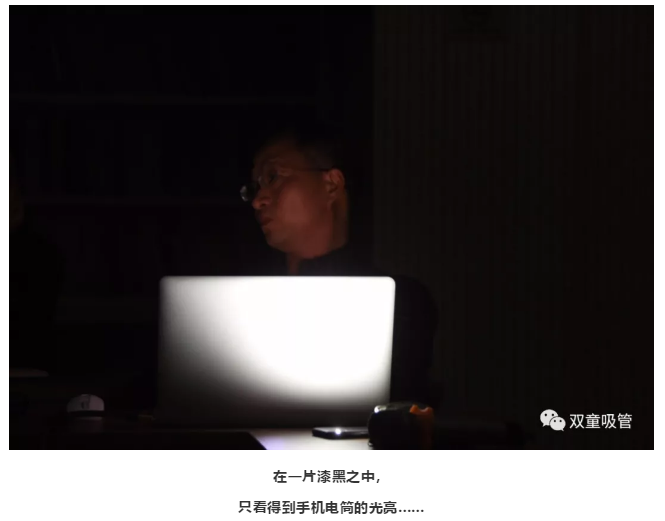 原來,是在“雙童”學習會現(xiàn)場,突然碰到了停電的情況。