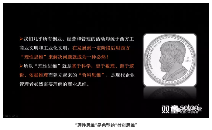 西方文明是一種生人文化和商業(yè)文化,“理性”是生人文化下產(chǎn)生的文化認知語境,是基于科學,忠于數(shù)理、源于邏輯、依據(jù)推理而建立起來的“哲科思維”,是現(xiàn)代企業(yè)管理者必然需要理解的商業(yè)思維。