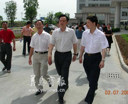 2007年7月2日上午,浙江省常務副省長陳敏爾協省國土資源廳廳長王松林一行10多人,以及金華市委常委、義烏市委書記吳尉榮和義烏市委副書記、市長何美華等40多位領導,前來本公司進行土地節(jié)約集約資源利用實施情況的實地考察,公司董事長樓仲平對陳省長一行匯報了雙童公司近年來對企業(yè)節(jié)約集約用地、循環(huán)經濟、生態(tài)工廠等建設情況的報告。