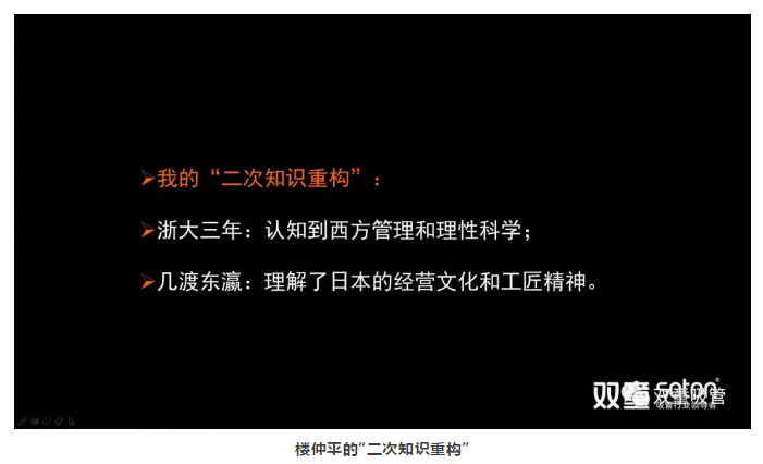 于是,他選擇到浙大學(xué)習(xí)進(jìn)修五年,沉下心來,拿起書本,重新開始學(xué)習(xí),并在這期間積累了不少管理理念和商業(yè)知識(shí),努力向知識(shí)界和學(xué)術(shù)界靠攏!