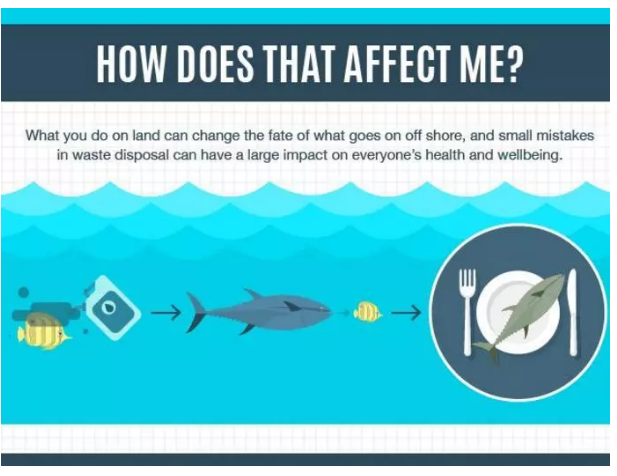 據(jù)調(diào)查,海鮮、牛肉、海鹽、自來水等都有被塑料污染的情況。 無法被分解的塑料進入海洋生物體內(nèi),沉積到血液、脂肪、肌肉里,最后又被人類吃下了肚。