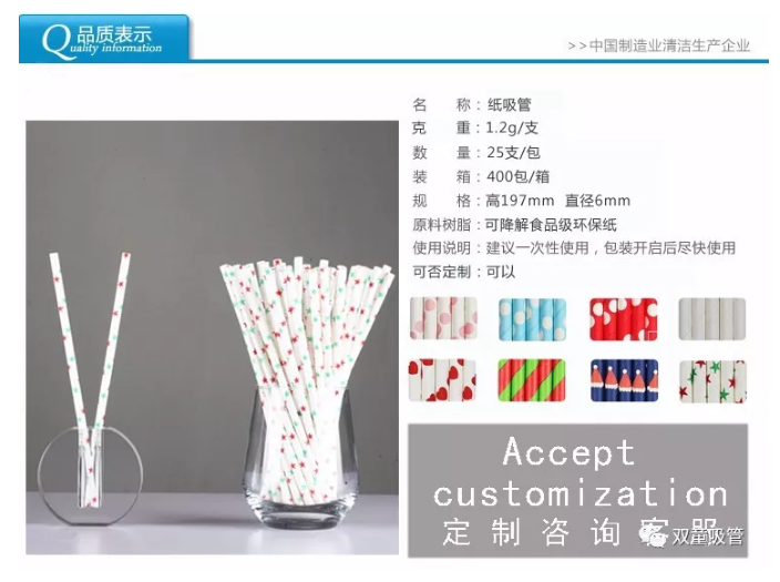相對(duì)于塑料吸管,紙質(zhì)吸管以食品接觸類原紙為主要材料,并能用大豆基油墨印刷各類花色,在顏色鮮艷飽滿的同時(shí),確保安全無毒無異味,在回收廢棄后三到四個(gè)月內(nèi)可完全降解,符合歐美國家對(duì)食品安全包裝的衛(wèi)生要求,可用于生日派對(duì)、餐飲連鎖、家庭消費(fèi)、兒童DIY用具等各類場(chǎng)所!