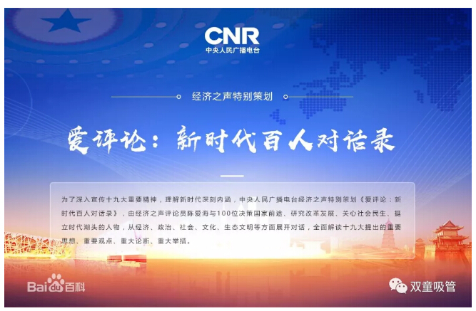 近日,中央人民廣播電臺(tái)經(jīng)濟(jì)之聲播出《愛(ài)評(píng)論:新時(shí)代百人對(duì)話錄》改革開(kāi)放四十周年特輯。其中,也播出了經(jīng)濟(jì)之聲首席評(píng)論員陳愛(ài)海對(duì)話“雙童”樓仲平的專訪節(jié)目!