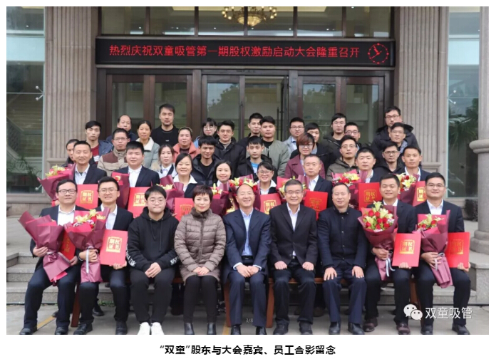 經(jīng)過(guò)八年的探索,經(jīng)過(guò)泰山管理學(xué)院對(duì)“雙童”股權(quán)激勵(lì)工作的支持和指導(dǎo),2018年12月19日,雙童吸管第一期股權(quán)激勵(lì)啟動(dòng)大會(huì)隆重舉行!“雙童”首批12位核心員工真正成為企業(yè)合伙人!