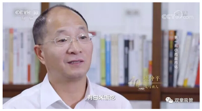 2018年12月19日晚,央視CCTV—10 播出了大型紀(jì)錄片《四十年四十個(gè)第一》第十五集《第一批小商品市場(chǎng)》!其中,講述了以“雙童”樓仲平為代表的幾位義烏商人的發(fā)展故事,講述了義烏在針頭線腦中發(fā)家致富,從貧瘠小縣城發(fā)展為全球小商品市場(chǎng)的蝶變故事!