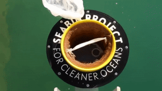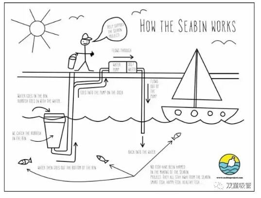 海洋里的垃圾就會被吸進(jìn)桶里的纖維袋內(nèi)。