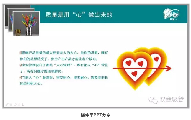 樓仲平與一位日本人的相遇,以及從海外客戶對(duì)不良產(chǎn)品投訴中所吸取的教訓(xùn),正是成為“雙童”貫徹企業(yè)成長(zhǎng)和以人為本經(jīng)營(yíng)理念的契機(jī)。