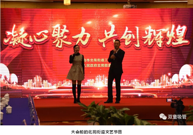 欣賞完文藝節(jié)目后,全體參會人員觀看了北苑發(fā)展宣傳片。短短幾分鐘的視頻,展示了北苑人民憑借敢闖敢干的拼搏精神和創(chuàng)業(yè)精神,抓住了一個又一個的發(fā)展機(jī)遇,實(shí)現(xiàn)了一次又一次的華麗蛻變,從而逐步成為義烏市的工業(yè)重區(qū)、經(jīng)濟(jì)強(qiáng)區(qū)、城市新區(qū),全面推進(jìn)社會經(jīng)濟(jì)的協(xié)調(diào)發(fā)展,取得了令人矚目的成績。