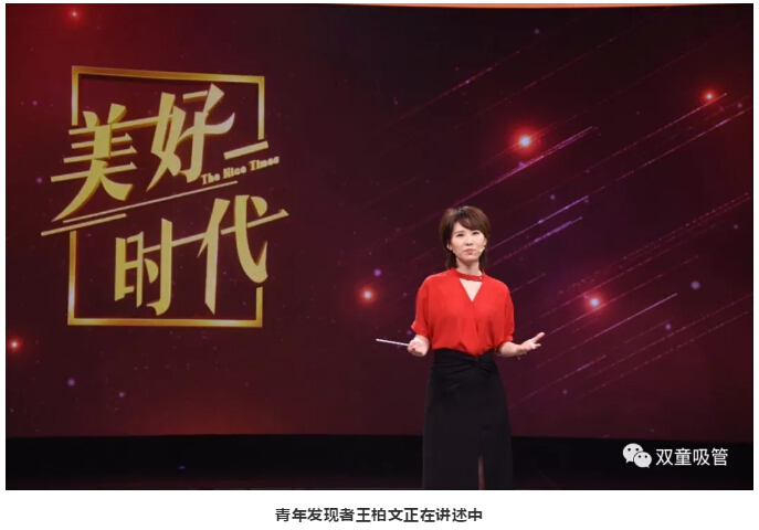 在“雙童”樓仲平上場前,青年發(fā)現(xiàn)者王柏文講述了“一根小吸管”的故事:“小小吸管原本只賣到幾厘錢,但有人卻用這‘毫厘’之利做到全球吸管行業(yè)領(lǐng)導(dǎo)者…… 他是義烏商人樓仲平,以小博大,以心克難,運籌帷幄,決勝千里!”