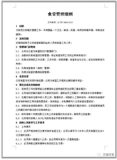 “雙童”食堂管理細(xì)則,涉及到餐飲管理的各個(gè)方面